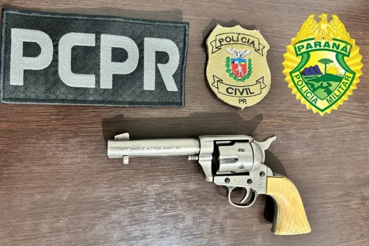 Em uma propriedade rural de Umuarama, uma arma de fogo do tipo revólver calibre .45 e duas munições sem registro foram localizadas. Porém, os artefatos em questão encontravam-se acoplados em um quadro decorativo e a princípio não apresentavam pleno funcionamento, de maneira que a Polícia Civil encaminhará a arma e as munições à Polícia Científica, que analisará o objeto.
