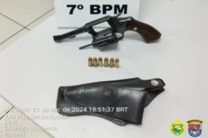 Um homem, de 54 anos, foi preso pela Polícia Militar (PM) no início da noite deste domingo (21), após denúncias de que ele teria ido até sua residência para buscar uma arma após um desentendimento que aconteceu em um bar de Cruzeiro do Oeste. Ele foi abordado pelos policiais em posse da arma enquanto conduzia um veículo enquanto estava com sinais de embriaguez.