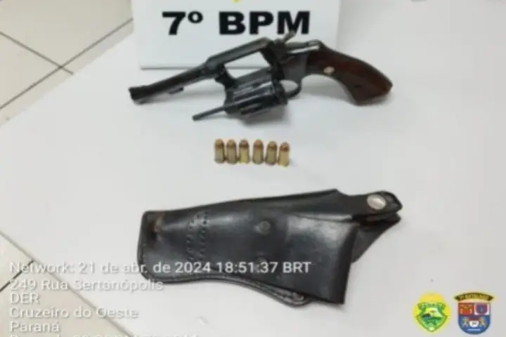 A situação aconteceu às 18h35. A equipe realizou a abordagem do suspeito e, embaixo do banco do motorista do Toyota Corolla os policiais encontraram um revólver com seis munições intactas.