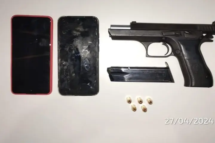 Após abordagem, foi encontrada uma pistola 9mm com munições de uso restrito próximo ao porta-malas. Os três foram conduzidos ao Hospital Municipal para exame médico e, em seguida, à Delegacia de Polícia Civil. O rapaz apontado como autor dos disparos em denúncias anteriores, foi detido devido ao seu comportamento agressivo durante a abordagem.