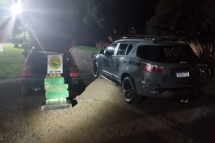 A situação aconteceu por volta das 21h. A equipe realizava um bloqueio pela rodovia quando abordou um VW Gol de cor vermelha. Os policiais perceberam fardos no bagageiro do veículo, que estava sem o tampão interno e, ao questionar o condutor, ele informou que estava transportando maconha.