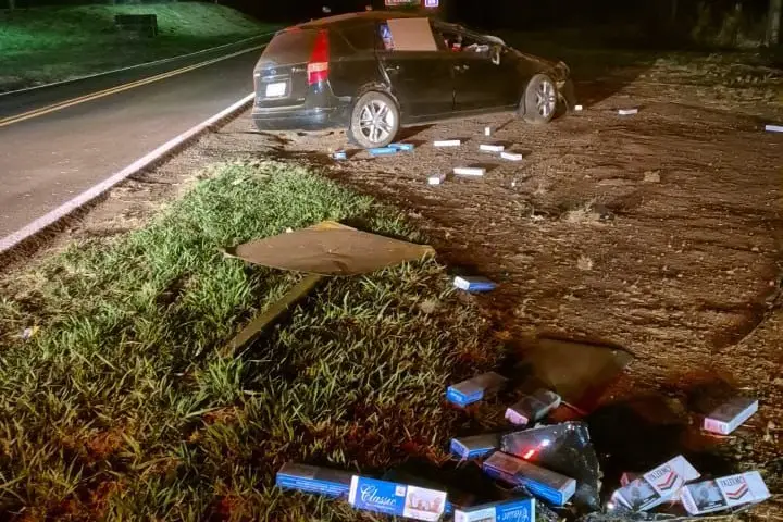 Apesar disso, os agentes conseguiram continuar a perseguição e ao passar por uma lombada o motorista perdeu o controle, capotando o veículo duas vezes em frente ao posto da Polícia Rodoviária Estadual. O condutor abandonou o veículo e fugiu para a mata nas proximidades, não sendo localizado. No interior do carro foram encontrados cigarros contrabandeados do Paraguai.