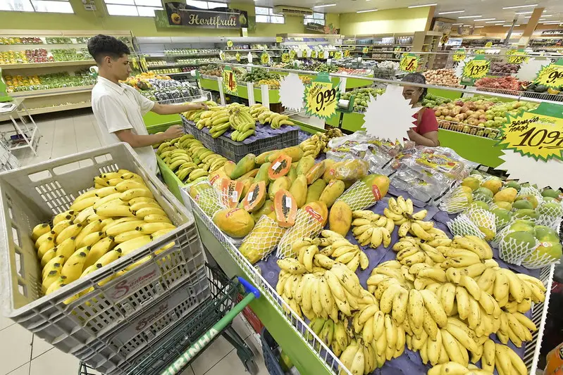 “Os cinco produtos que ficaram caros nos últimos trinta dias foram o absorvente aderente (26%), a batata (11%), a alface (10%), o desodorante (8%) e a cenoura (7%). Já os que registraram maior queda nos preços foram o fubá (19%), o feijão carioquinha (12%), a banana-nanica (10%), o café em pó e o sabonete (9%) e o papel higiênico (8%)”, informa.