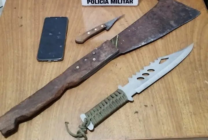 Uma situação de lesão corporal, ameaça, desobediência e resistência foi registrada para Polícia Militar (PM) de Umuarama no início da noite de sábado (4), no Parque Tarumã. Era pouco antes das 19h quando um homem feriu uma pessoa em um bar e ameaçou outras com duas facas e um facão.
