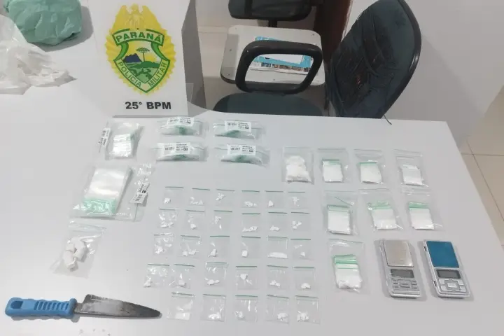 A PM foi acionada e verificou que a sacola comportava 10 porções com 97 gramas de cocaína, além de 6 pacotes de embalagens plásticas fechadas para a droga e balanças de precisão. Havia também cartões de programas sociais do governo e vale-alimentação.