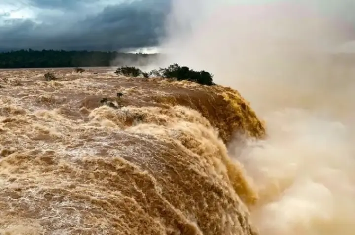 O aumento da vazão se deve às chuvas ao longo do leito do Rio Iguaçu – que nasce próximo a Curitiba e segue no sentido leste a oeste do Paraná, passando pelas quedas que ficam no limite entre Argentina e Brasil -, em especial as registradas no sudoeste do estado.
