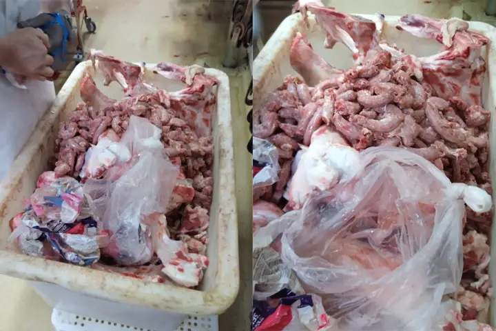 Já no segundo supermercado, o produto encontrado absolutamente fora dos padrões de segurança alimentar foi um lote de pescoço de frango. “A situação era ainda pior e os agentes inutilizaram tudo no local, utilizando cloro para realizar o devido descarte. A Vigilância Sanitária realiza operações de fiscalização constantemente, porém, nesses dois casos de hoje, as ações foram feitas após o recebimento de denúncias”, contou.