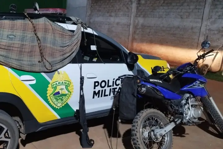 De acordo com a equipe, os policiais estavam em patrulhamento pela Zona Rural do município, quando, ao abordar um motociclista, foi localizada a arma de fogo sem licença e equipada com mira holográfica, além de objetos tipicamente utilizados para a caça de animais, como rede de espera, faca e lanterna. Também foi verificado que a moto estava com o chassi suprimido.