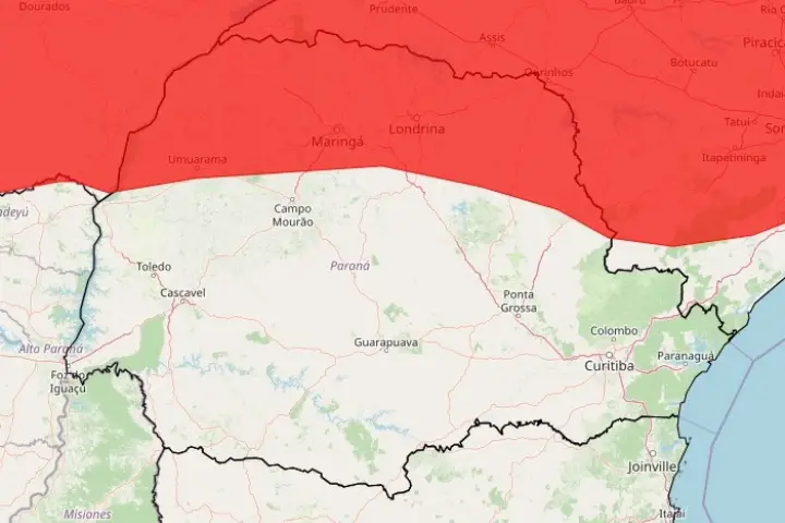 O Instituto Nacional de Meteorologia (Inmet) emitiu um alerta vermelho (com grau de perigo alto) para uma onda de calor na região de Umuarama e municípios próximos. O alerta tem validade até as 18h desta quinta-feira (9). O Inmet informa que há risco à saúde da população e chama a atenção para, em casos de perigo, acionar a Defesa Civil pelo telefone de emergência 199.