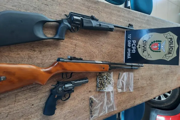Durante a operação, o indivíduo foi preso em flagrante, na posse de uma espingarda calibre.22 e 110 munições calibre.22. Além disso, foi apreendido um revólver de airsoft e uma espingarda de pressão.