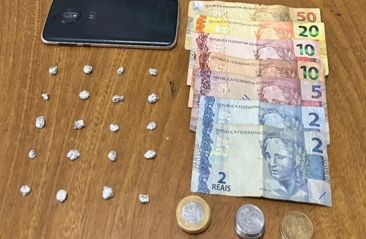 Com ele foi encontrada uma quantidade significativa de crack. A droga estava embalada em papel alumínio. Em seu bolso traseiro havia R$ 109 em dinheiro trocado, cuja origem ele não soube precisar.