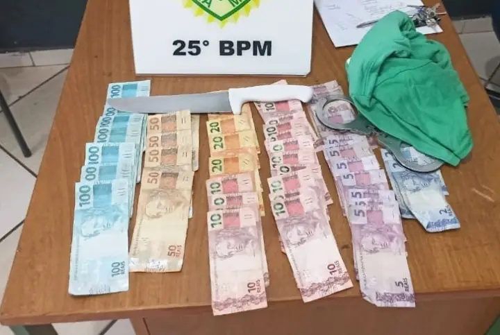 O criminoso foi contido pelos PMs. Com ele foram localizadas diversas cédulas de dinheiro, totalizando R$ 1.408,00 – mesmo valor roubado do estabelecimento comercial.