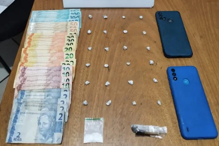 Assim que receberam a ordem de abordagem, ambos desobedeceram os policiais e tentaram fugir correndo, porém foram interceptados. Com eles, a equipe encontrou R$ 750 em dinheiro trocado dentro de uma meia, além de R$ 10 dentro do bolso. Na cintura do homem que tentou esconder o objeto, havia 23 pedras de crack embaladas em papel alumínio, pesando aproximadamente 4 gramas, além de um papelote com uma grama de cocaína.