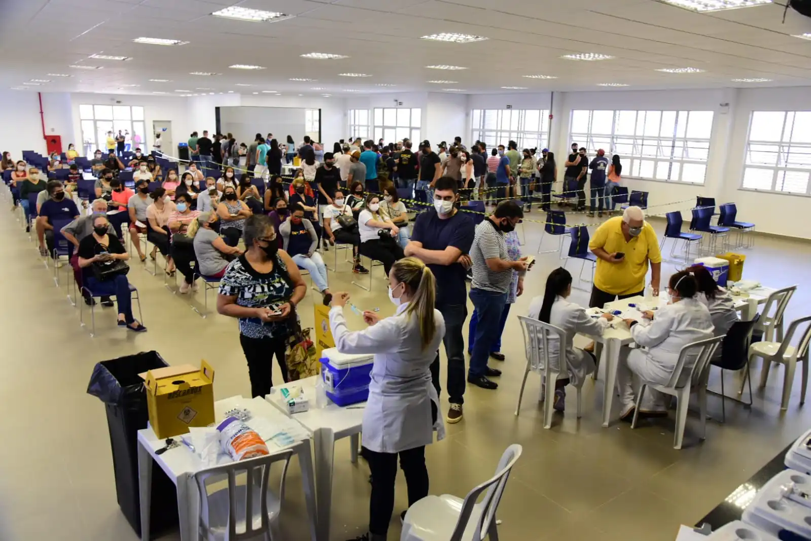 A vacinação está acontecendo no Sest/Senat, localizado na avenida Dr. Ângelo Moreira da Fonseca nº 791 – em frente ao Pronto Atendimento. Foram disponibilizadas em torno de 1.730 doses. Conforme apurado por OBemdito, até às 10h tinham sido aplicadas cerca de 400 doses, entre D1 e D2.
