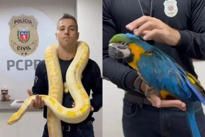 Uma mulher foi presa ao ser flagrada mantendo uma cobra píton e uma arara Canindé em cativeiro em sua própria casa, na Cidade Industrial de Curitiba (CIC). Ela foi detida pela Polícia Civil por tráfico de animais e maus-tratos.