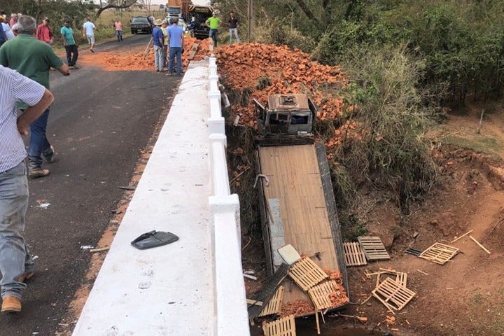 Com a batida atingiu com a mureta de proteção da ponte caindo em ribanceira à margem direita da rodovia.