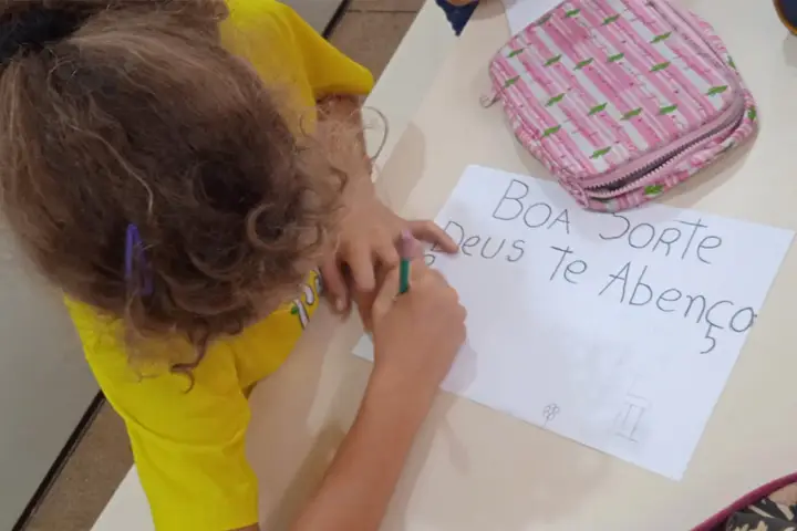 Os 63 alunos da Associação Colorindo o Futuro estão escrevendo cartas para as crianças vítimas das enchentes que assolam o Rio Grande do Sul. A ideia surgiu durante uma conversa entre o presidente, pastor Weslei Odair Orlandi, e a coordenadora Marly Simões Damasceno da Silva, sobre a tragédia no estado e como poderiam ajudar.