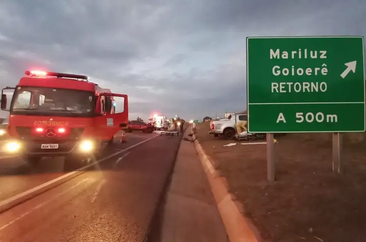 A colisão entre uma caminhonete Fiat Toro e uma Chevrolet S10 que aconteceu na PR-323, no trevo de acesso à Mariluz, na região de Umuarama, aconteceu durante uma tentativa de retorno de um dos veículos, segundo informações divulgadas pela Polícia Rodoviária Estadual (PRE). O acidente aconteceu na noite desta sexta-feira (17).