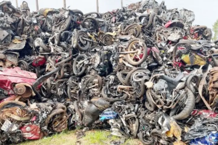 Centenas de motocicletas, automóveis e até caminhões que foram apreendidos em Goioerê, Cianorte, Cruzeiro do Oeste e Umuarama viraram uma “montanha” de sucata ao serem destruídos no pátio da 2ª Cia da Polícia Militar de Goioerê.