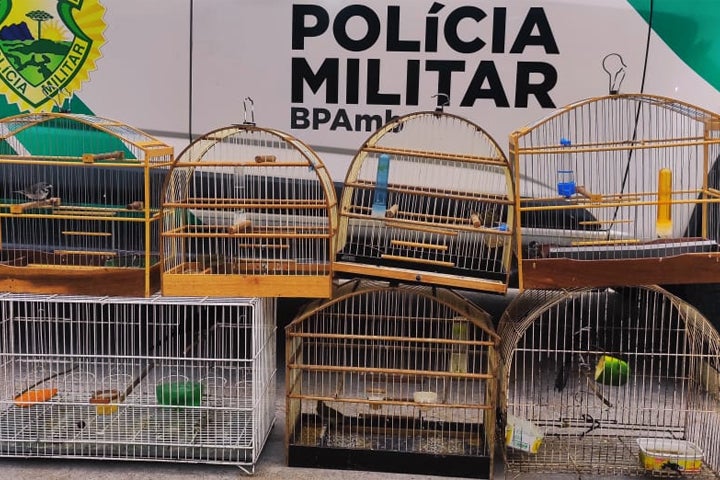 Na primeira residência, havia duas aves coleiro Papa-Capim e um Inhapim. Na segunda, foram encontrados três coleiro Papa-Capim e um Inhapim.