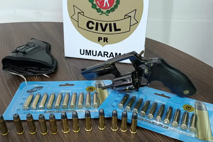 A Polícia Civil encontrou um revólver calibre 38 e 32 munições do mesmo calibre intactas dentro de um cofre, que foi apreendido durante a Operação Cronos XIII, deflagrada na manhã desta segunda-feira (20), em Umuarama. A operação, que faz parte das investigações do crime de homicídio ocorrido no dia 29 de outubro do ano passado, no Parque Dom Pedro I, quando foi morto Ricardo Aparecido da Silva, de 38 anos de idade, cumpriu 5 mandados de busca e apreensão, todos na capital do Noroeste.