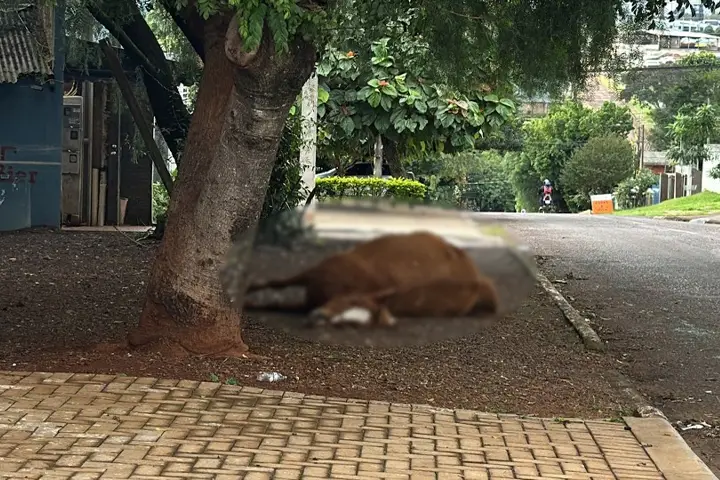 Fotos registradas na manhã desta segunda-feira (20) mostram que o corpo do animal ainda não foi retirado do local. A situação preocupa os moradores, pois pode haver a proliferação de moscas e outros animais na região.
