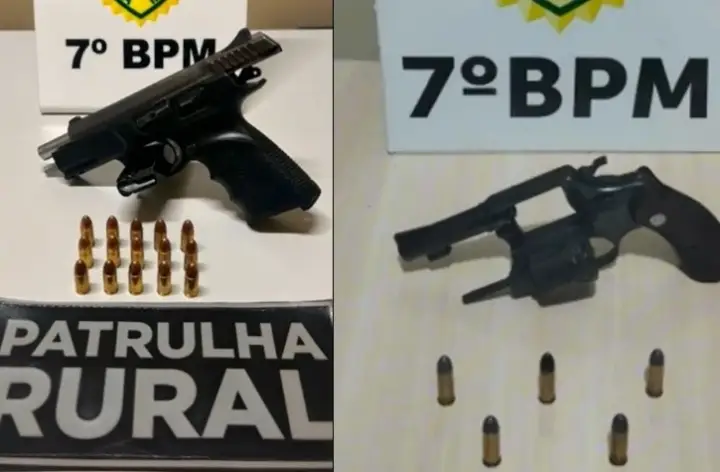 As equipes da Patrulha Rural do 7º BPM (Batalhão de Polícia Militar) realizaram a apreensão de duas armas de fogo no último fim de semana. Também foram localizadas munições e dois homens foram presos.