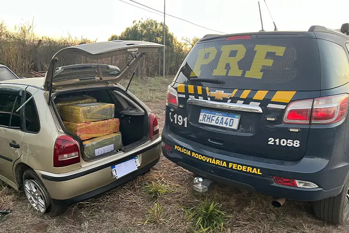 Mais cedo, em Guaíra, a PRF apreendeu 124 quilos de Maconha em um Fiat/Uno que se acidentou ao fugir da equipe policial, que fiscalizava na BR-163.