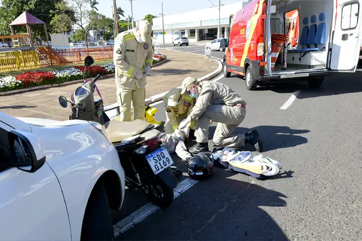 A movimentação de ambulâncias e viaturas das forças de segurança chamou a atenção de motoristas que passavam na Praça Miguel Rossafa, na manhã desta terça-feira (21). O que parecia mais uma colisão, envolvendo um automóvel e uma motocicleta, na verdade era uma simulação realizada pelo Corpo de Bombeiros e pela Guarda Municipal de Umuarama (GMU) para conscientizar os condutores sobre o risco de acidentes.