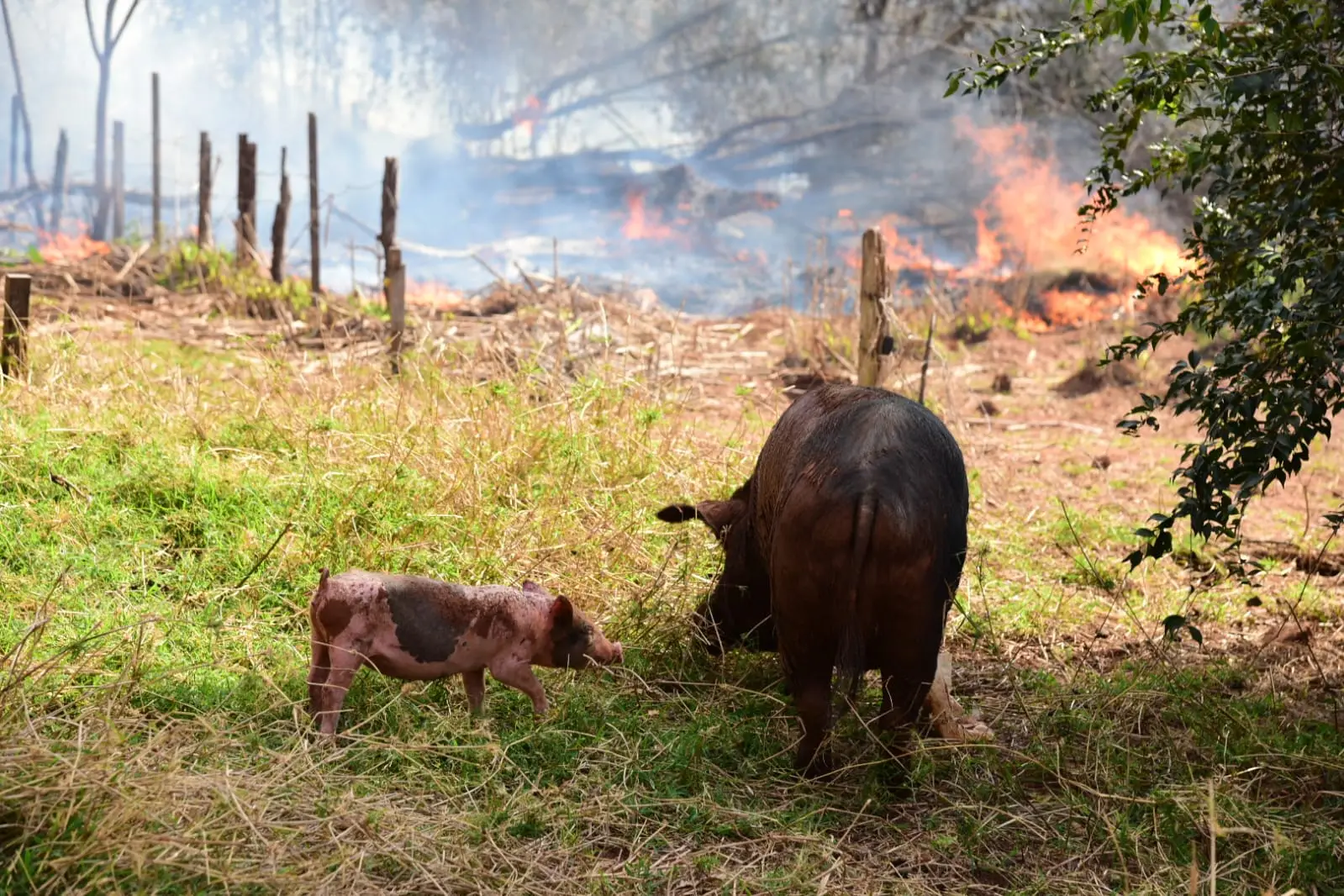 Conforme a moradora, o fogo começou na região do chiqueiro, depois atingiu alguns bambus e foi se alastrando muito rapidamente.