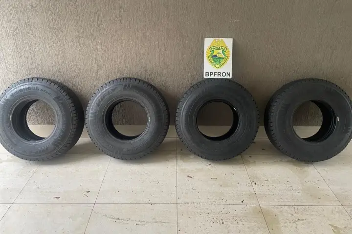 A apreensão aconteceu por volta das 8h20, quando os policiais receberam informações de que uma pessoa em um veículo estava desmontando pneus no estabelecimento. No local, a equipe conseguiu abordar o suspeito e encontrar quatro bobinas de pneus com quatro pneus cada, totalizando 16 pneus de origem estrangeira.