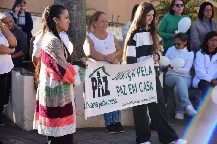 Nesta quarta-feira, em frente à Prefeitura de Alto Piquiri, dezenas de pessoas participaram da manifestação. Algumas estavam vestidas com roupas brancas e também seguravam balões brancos, com o objetivo de pedir por paz.