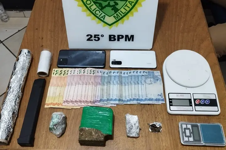 Após receber uma denúncia anônima, a PM esteve no local. Durante buscas na residência, os militares encontraram 280 gramas de maconha, uma balança de precisão, materiais para embalar drogas, um carregador de pistola 9mm com capacidade para 30 munições, R$ 216 em dinheiro e celulares.