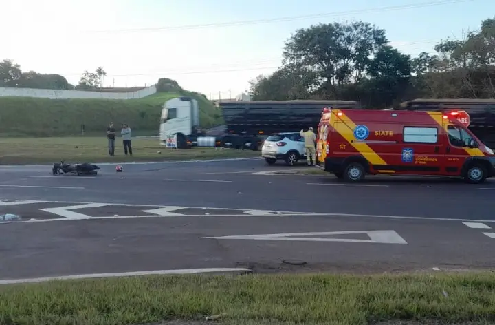 Uma colisão entre uma motocicleta e um automóvel foi registrada no fim da tarde desta sexta-feira (31) no trevo do parque de exposições, no trecho urbano da PR-323, em Umuarama. O condutor da moto teve ferimentos e foi socorrido pela equipe do Corpo de Bombeiros.