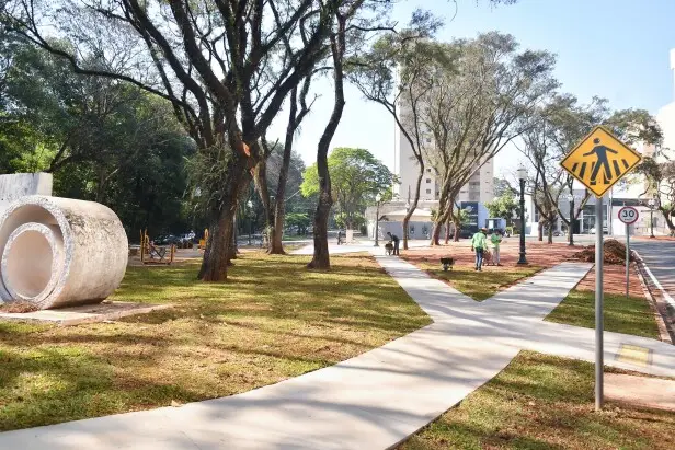 Os blocos sextavados de concreto foram retirados por conta das irregularidades, que causavam incômodos e até riscos aos usuários daquela área de lazer. No lugar deles, uma prestadora de serviços contratada pelo município implantou uma calçada lisa, em concreto, eliminando desníveis e preservando o contorno da arborização existente. Foram construídos cerca de 1.050 metros lineares de calçada (cerca de 2.300m²).