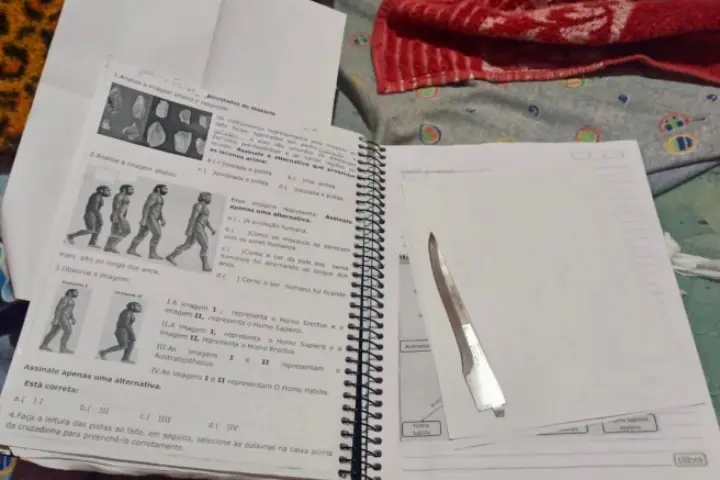 No dia 17 de abril de 2024 a Polícia Civil cumpriu buscas na casa do alvo e encontrou dentro de seu livro uma lâmina de faca que, segundo o órgão, era diariamente levada para a escola. O adolescente não estava na residência no momento da busca.
