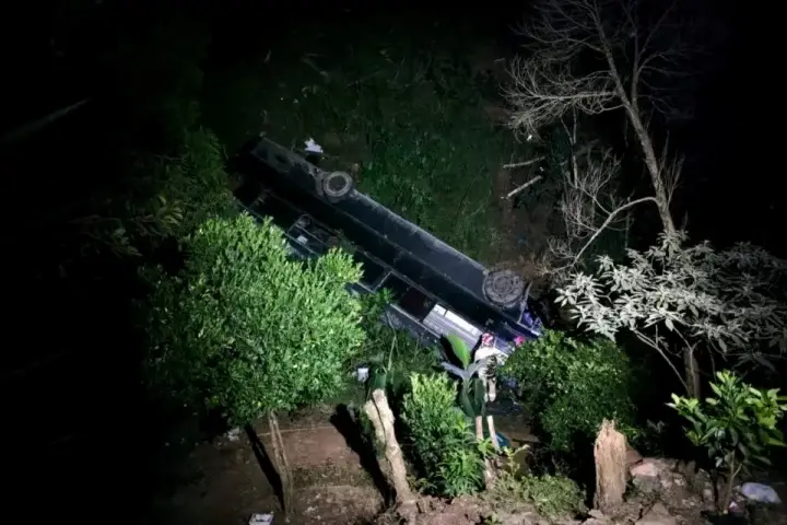 De acordo com o Corpo de Bombeiros, os sobreviventes disseram que o veículo ficou sem freio cerca de um quilômetro antes de colidir no barranco e cair de aproximadamente 100 metros.