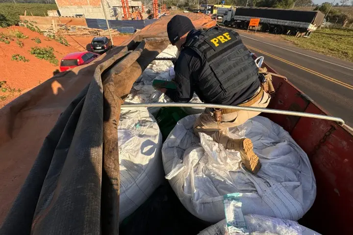 O motorista, morador de Ourinhos (SP), foi abordado na unidade da PRF que está em construção na BR-487. Durante a fiscalização, a equipe policial localizou diversos fardos contendo tabletes da droga escondidos nas laterais e no meio dos sacos.