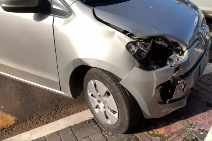 A mulher teve a perna prensada em uma placa de trânsito, sofrendo fratura exposta. A criança caiu e bateu a cabeça no capô do veículo, mas não sofreu ferimentos graves.