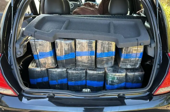 Com os dois ocupantes nada de ilícito foi encontrado, mas durante a busca veicular foram encontrados 18 fardos de substância análoga à maconha, que após pesagem totalizaram 300 kg. Os dois presos e a droga apreendida foram encaminhados para os procedimentos cabíveis.