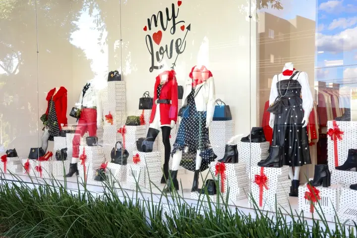 Na Avenida Maringá, a decoração da vitrine de uma das lojas não passa despercebida. A equipe inovou e fez uma composição com cores e looks com muito estilo para os dias mais frios. A Empresária Lucimar entende que é fundamental entrar nesse clima do amor para que os consumidores aumentem o desejo de presentear.