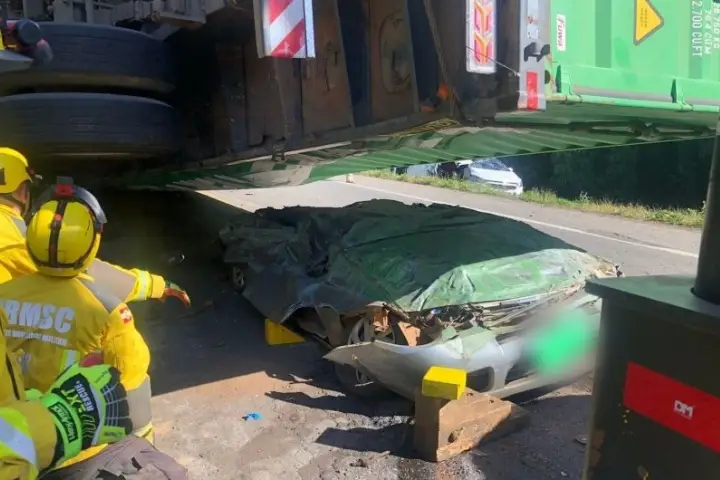 As informações são de que o contêiner era carregado por uma carreta, que seguia no sentido contrário onde as vítimas estavam e tombou na rodovia. Os corpos das vítimas ficaram presos às ferragens e foram removidos pelo Corpo de Bombeiros e com o apoio de um guindaste, que retirou o contêiner de cima do veículo.