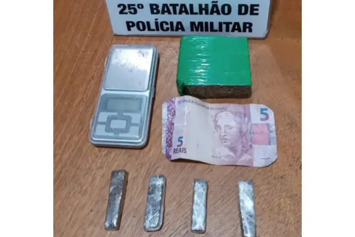 Foi feito o contato com o morador de uma residência residência, de 19 anos, e em continuidade às buscas foram encontradas as porções de maconha, uma balança de precisão e R$ 5.