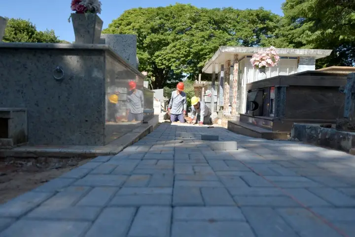 O serviço começou a ser executado há cerca de 20 dias, com a demolição de calçadas irregulares, remoção de entulho e regularização do terreno. Agora a empresa iniciou o assentamento dos blocos de concreto intertravados e finalizará com paisagismo. A expectativa é que a obra está concluída até o período de finados (2 de novembro), quanto o cemitério recebe tradicionalmente o maior volume de visitantes.