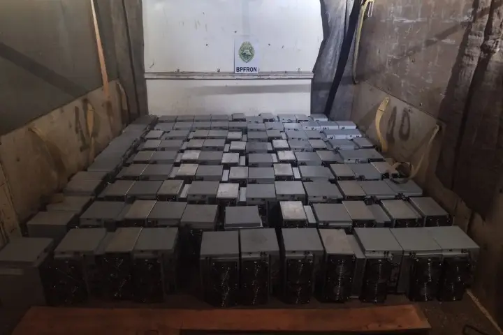 Uma ação conjunta do BPFron (Batalhão de Polícia de Fronteira), Polícia Federal e FICCO (Força Integrada de Combate ao Crime Organizado) resultou na apreensão de 115 máquinas de criptomoedas em Umuarama. A ação aconteceu nesta quinta-feira (13) e as máquinas estavam em uma carreta.