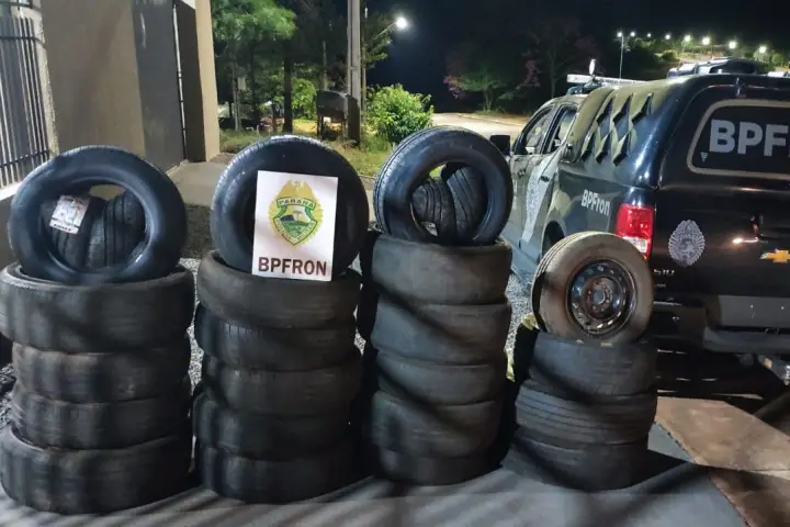 Após uma busca, foram encontrados 40 pneus contrabandeados do Paraguai, sem os devidos desembaraços aduaneiros exigidos pela legislação brasileira. O condutor do veículo, um homem de 61 anos, foi identificado, qualificado pelas autoridades e liberado no local, assim como o veículo.