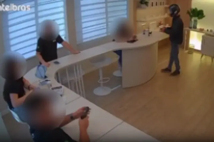 As imagens mostram o homem chegando ao local e imediatamente anunciando o crime. Na sequência, o empresário – que está em um balcão próximo – saca uma arma de fogo e dispara contra o suspeito, que cai no chão. Além dos dois, outras três funcionárias estavam presentes.