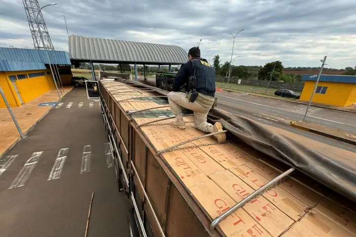 Ao vistoriar a carga, a PRF encontrou 450.000 maços de cigarros paraguaios. Já sobre a divergência no número da placa, os agentes constataram que o veículo era produto de roubo na cidade de Araras (SP) em 19/04/2024.