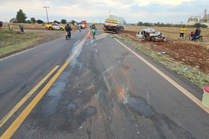 O acidente aconteceu às 6h40, segundo a Polícia Rodoviária Estadual (PRE). O caminhoneiro, de 45 anos, seguia com o veículo pela rodovia no sentido Francisco Alves a Palotina quando, no quilômetro 256 colidiu com o Celta.