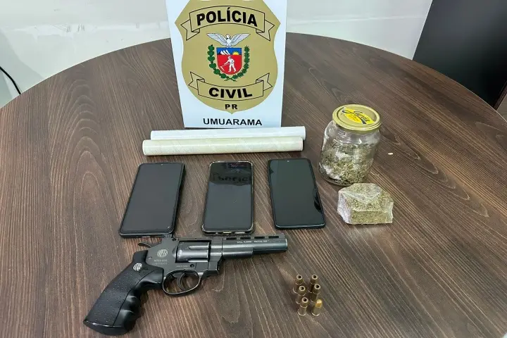 A 7ª Subdivisão Policial de Umuarama cumpriu, na manhã desta terça-feira (18) um mandado de busca e apreensão domiciliar em uma residência do Conjunto Residencial Ouro Branco, em Umuarama. As equipes encontraram um simulacro de revólver, uma munição calibre .38 e porções de maconha no local.
